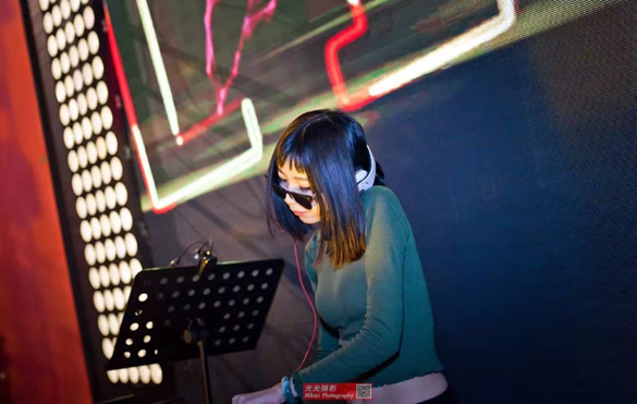 La DJ Liia en pleno set en una fiesta de electrónica en China.