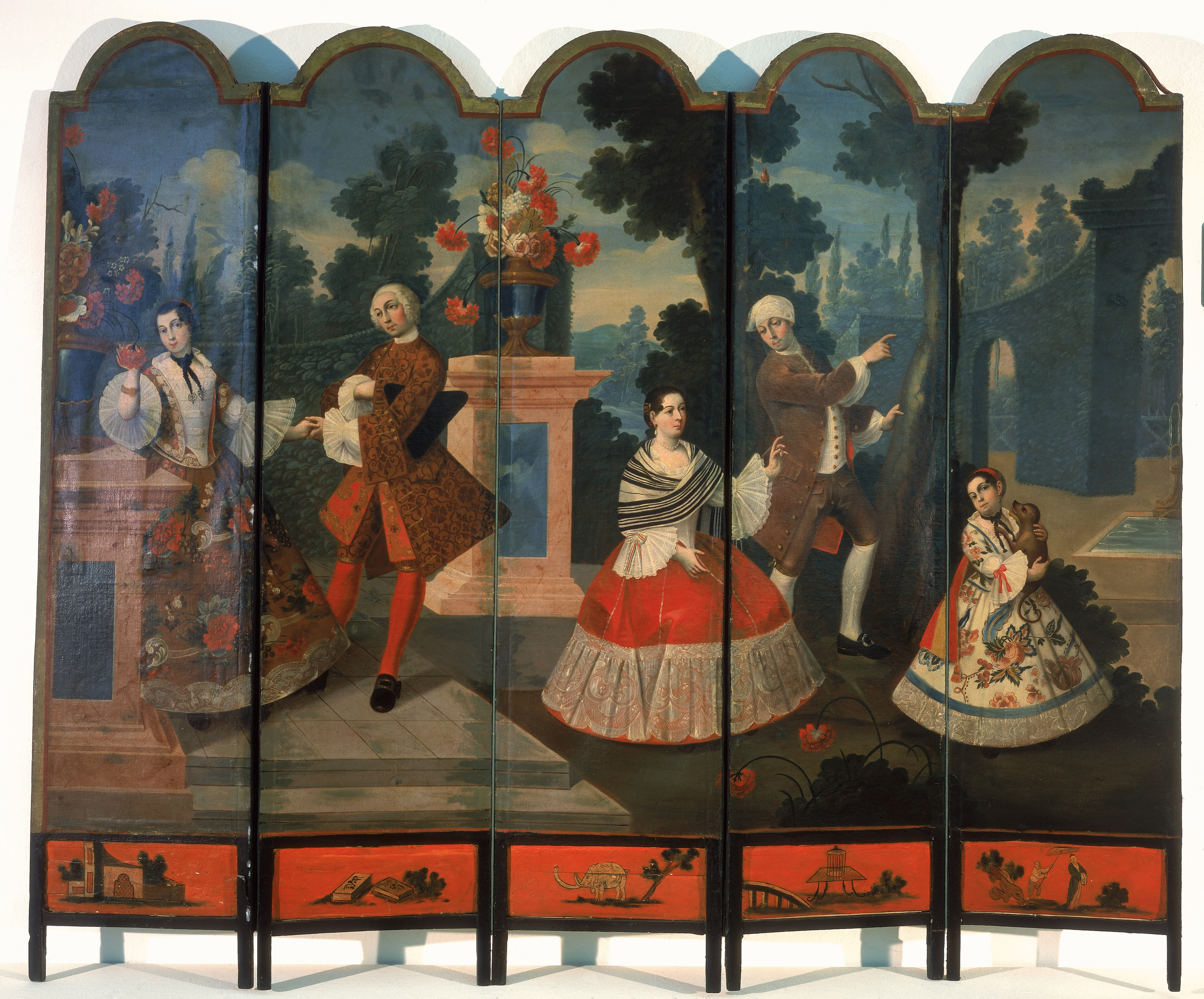 Escena de campo de autor anónimo novohispano. Pieza exhibida en Biombos y Castas. Pintura profana en la Nueva España