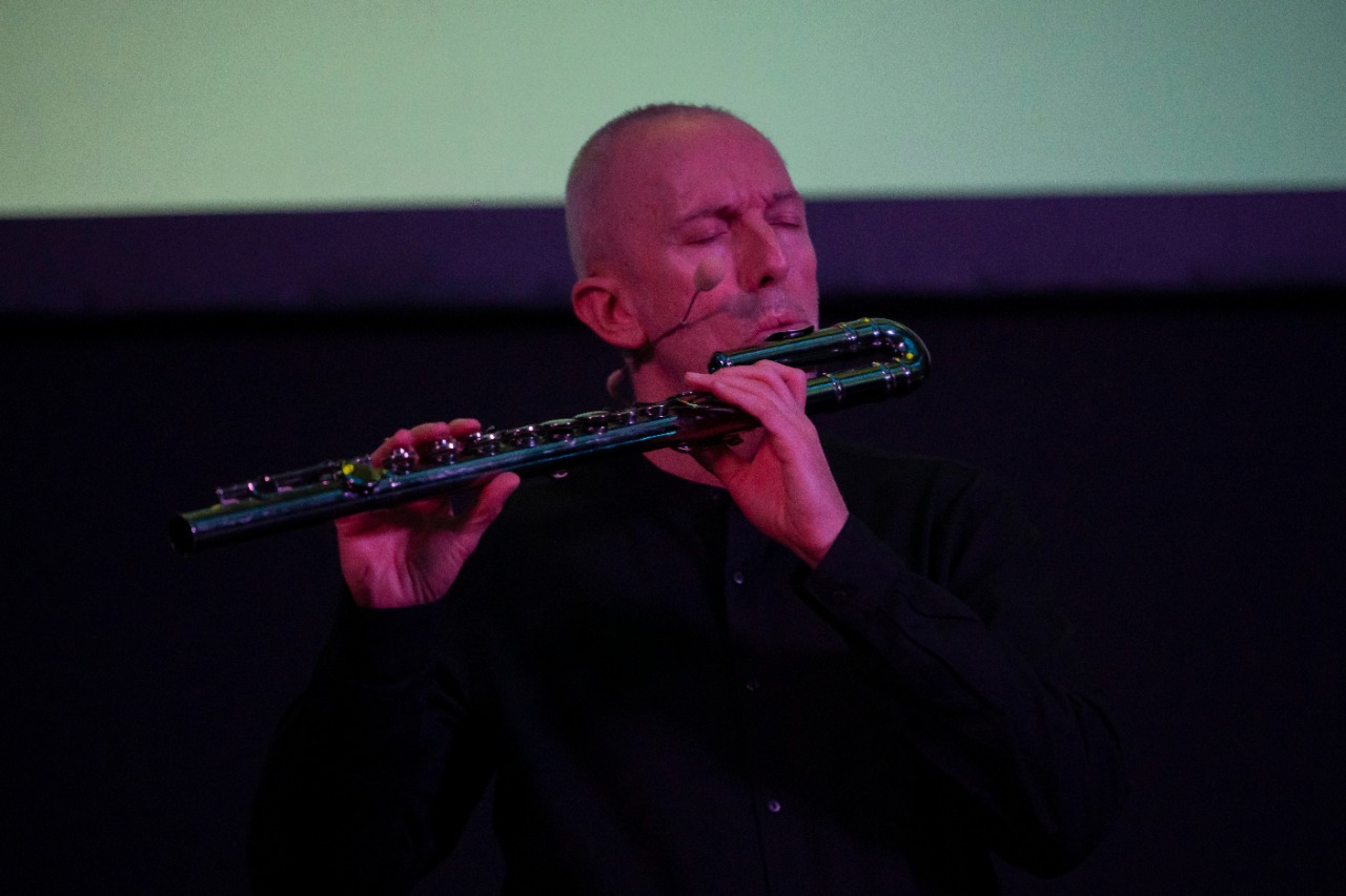 Moderno, innovador y con una sonoridad muy especial. Maquin-ARIAS, concierto lumínico de Alejandro Escuer y Rodrigo Sigal, creó una experiencia sonora y visual a través de imágenes que se movían al ritmo de la flauta y la electrónica.