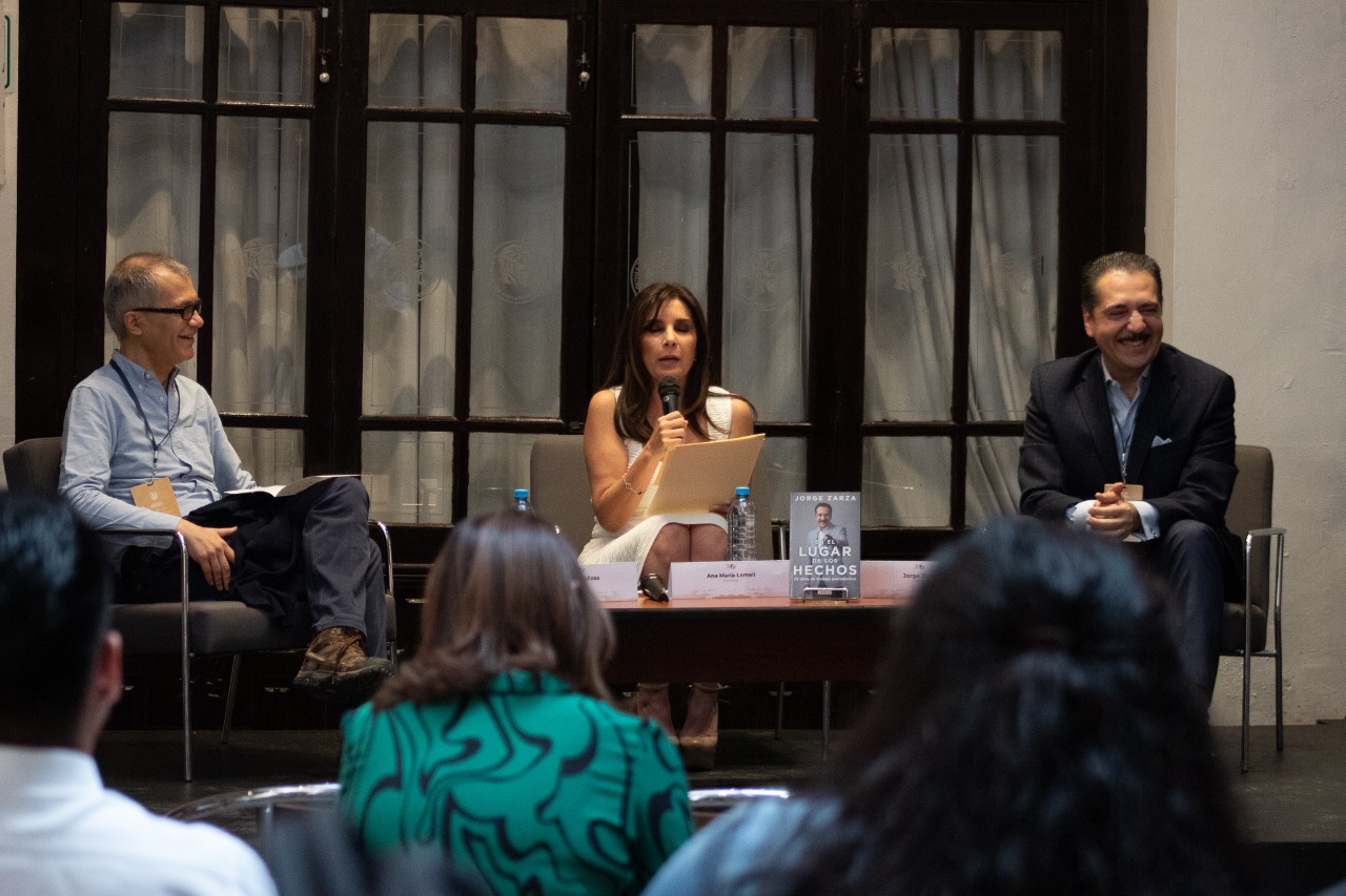 En el lugar de los hechos, de Jorge Zarza, reúne las experiencias y lecciones del presentador de noticias mexicano. Además del autor, en la presentación del libro estuvieron el escritor Pablo Boullosa y la periodista Ana María Lomelí.