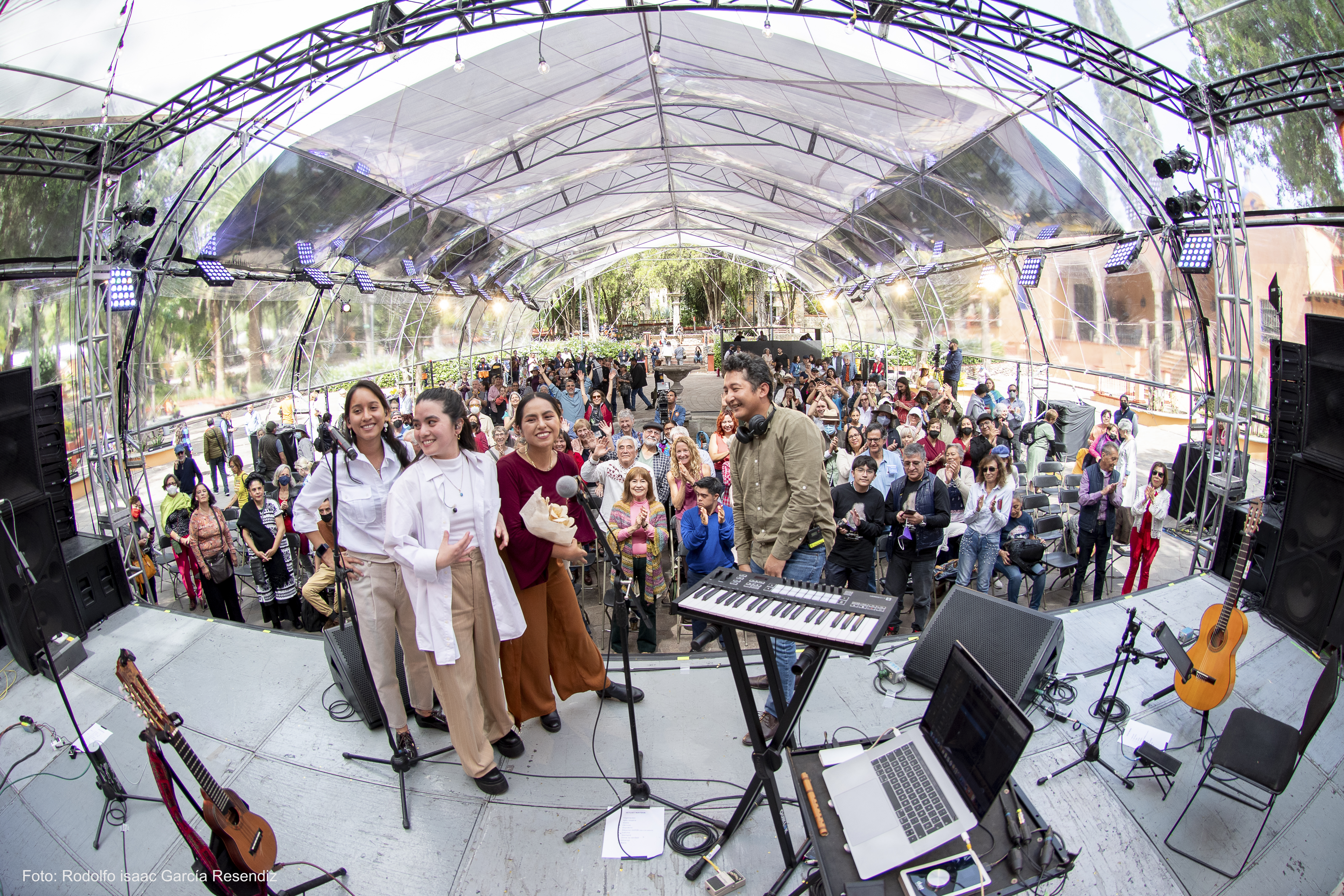 “¡Chicas, nos hemos preparado para esto… estamos aquí porque nos hemos esforzado mucho, con todo el derecho de pararnos en el escenario y darlo todo!” Ana Paula Alva es bajista, Sayuri Espinoza percusionista y Jonathan Mendoza guitarrista. Naysha habla de las diferencias de género y lo mucho que cuesta a las mujeres subir al escenario, ella a elegido a dos jóvenes para acompañarla tocando: “ellas han estudiado, son especialistas en sus instrumentos, les gusta tocar, pero además son compositoras y arreglistas, como yo. Nos hemos preparado, junto con Jonathan para esto, para estar donde bota nuestra adrenalina”.