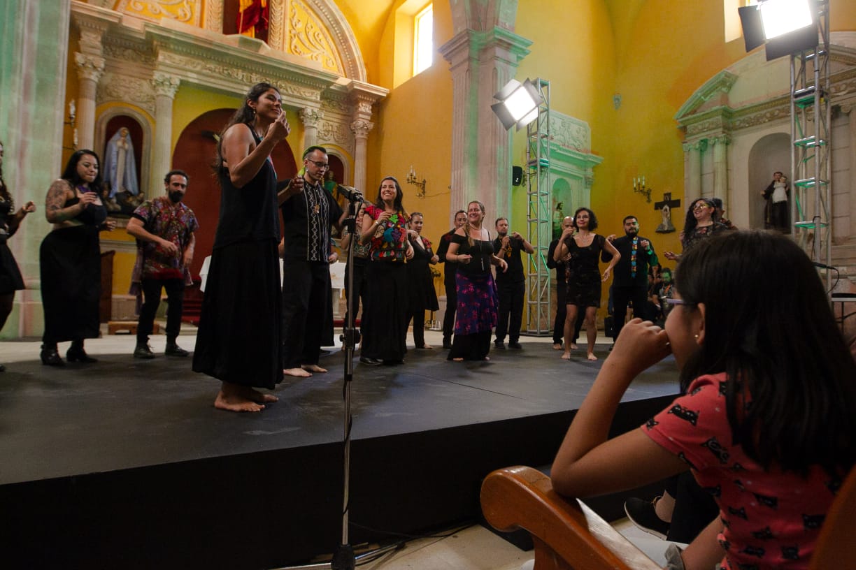 El templo del Señor Santiago Apóstol en Marfil se llenó de las voces a capella del Coro Acardenchado. Retomando el tradicional canto cardenche cantaron canciones propias como DumBá y Pásele, pásele, así como canciones tradicionales como Ojitos negros y Al pie de un árbol