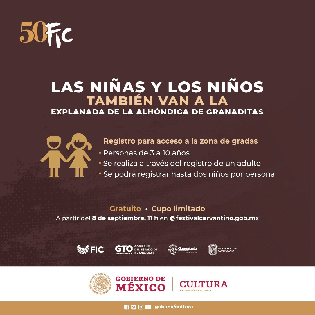 La oferta completa de actividades de la quincuagésima edición del Festival Cervantino puede ser consultada en la página oficial festivalcervantino.gob.mx, así como en la aplicación móvil Cervantino disponible para los dispositivos móviles con sistemas operativos iOS y Android donde también será posible registrarse de forma gratuita para los eventos en la Alhóndiga de Granaditas.