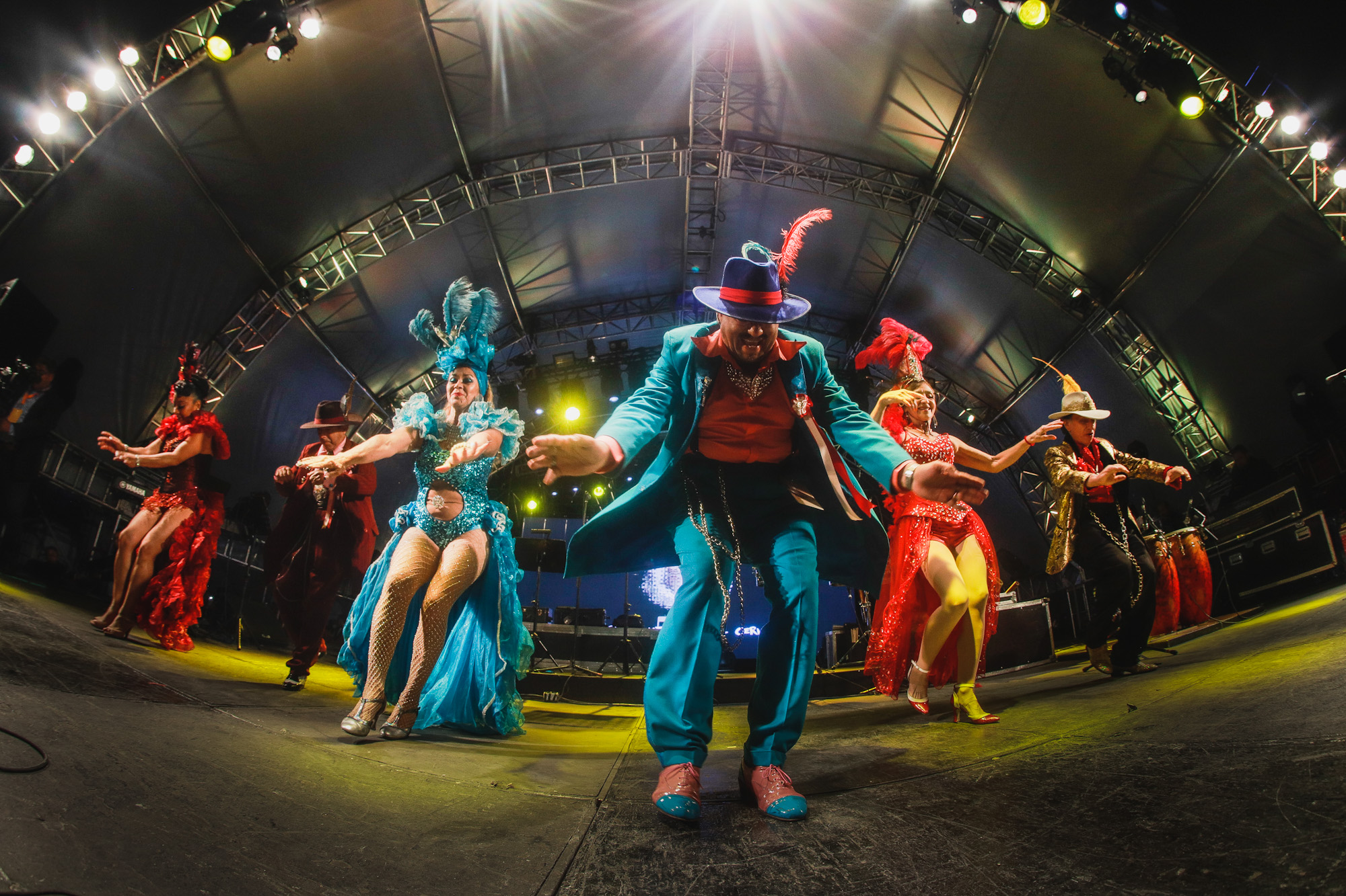 Antes de que los músicos comenzaran el concierto, pachucos y rumberas salieron a calentar el escenario mostrando sus mejores pasos y vestuarios siempre llamativos. Después de un video que recordó la historia del Salón Los Ángeles y el nacimiento de la Sonora Santanera en ese lugar, se escucharon los primeros acordes de La Boa, uno de los temas estandarte de este grupo fundado en 1955 y que esta vez eligieron para abrir y cerrar el telón, antes de que el público pidiera otras canciones.
