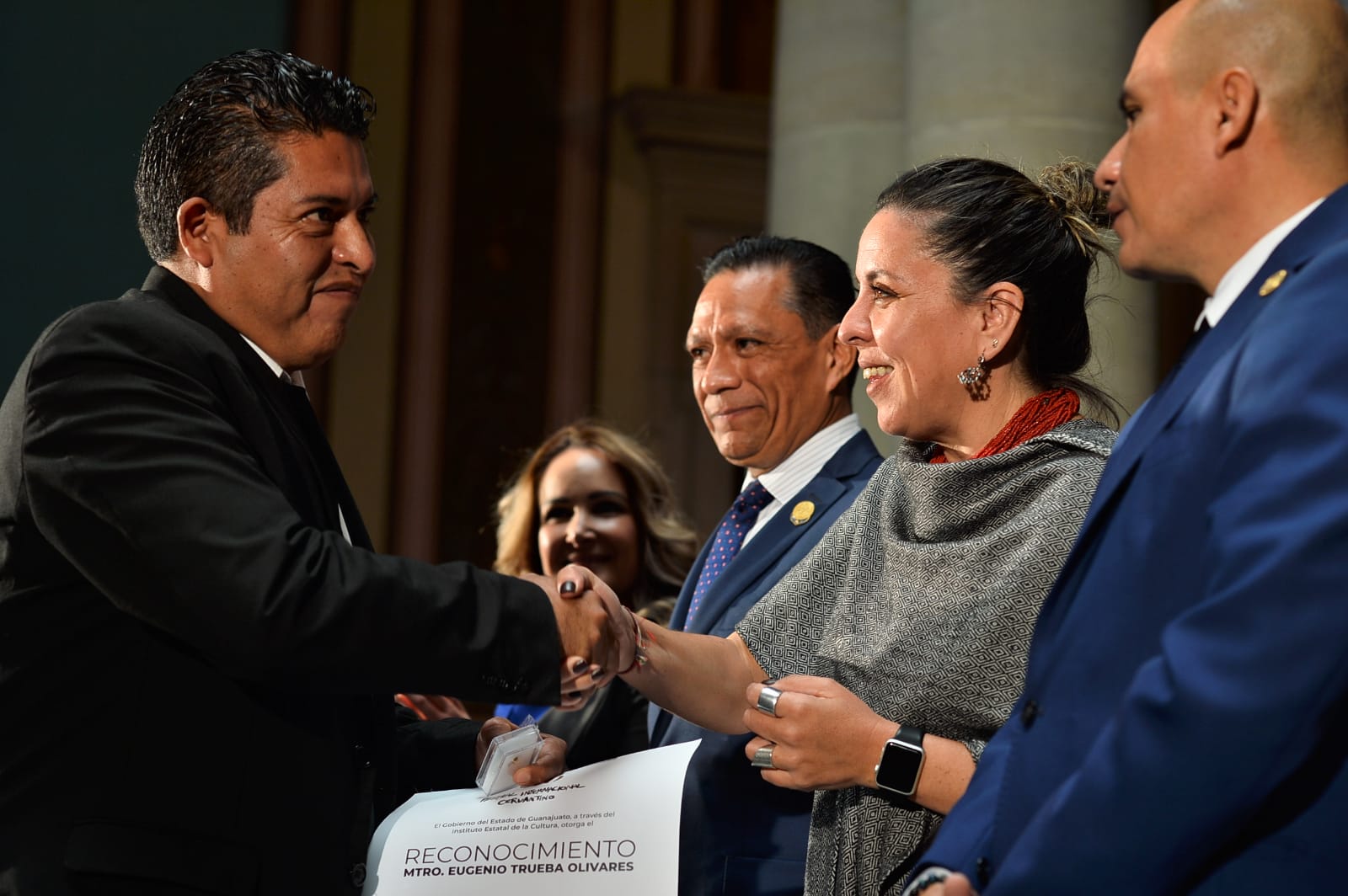 Este año la ceremonia de reconocimiento contó con la participación de Diego Sinhue Rodríguez Vallejo, Gobernador del Estado de Guanajuato; Adriana Camarena de Obeso, Directora general del Instituto Estatal de la Cultura; Adalberto de Jesús Tovar Gomez, Director de la Banda de Música del Estado de Guanajuato; María Rosa Medina Rodríguez, presidenta del Supremo Tribunal de Justicia y del Consejo del Poder Judicial del Estado; el diputado Martin López Camacho, presidente de la mesa directiva del Congreso del Estado; Mariana Aymerich Ordoñez, directora general del Festival Internacional Cervantino; Luis Felipe Guerrero Agripino, Rector General de la Universidad de Guanajuato; Alan Sahir Marquez Becerra, Coordinador general de omunicación social de Guanajuato; Carlos Eugenio Morrill Trueba, nieto de Eugenio Trueba Olivares; las diputadas Margarita Rionda Salas, Diana Gutierrez Valtierra; Samantha Smith Gutierrez, presidenta del DIF Municipal; Teresita de Jesús Rendón Huerta Barrera, Rectora del campus Guanajuato de la UG e Integrantes de la Banda de Música del Estado de Guanajuato.