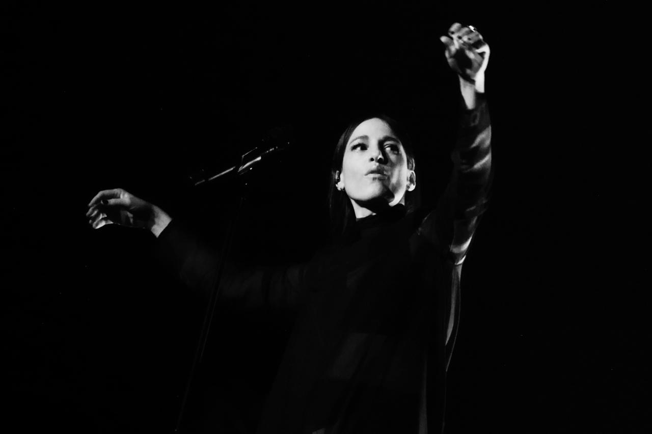 La velada se desarrolló en un ambiente íntimo, con la iluminación del teatro totalmente apagada y un juego de luces rojizas y azuladas sobre el escenario que solo dejaba ver la silueta de la cantante y sus músicos. Desde ahí cantó temas de su álbum Maria; “es el que habla más de mí”, compartió con el público.